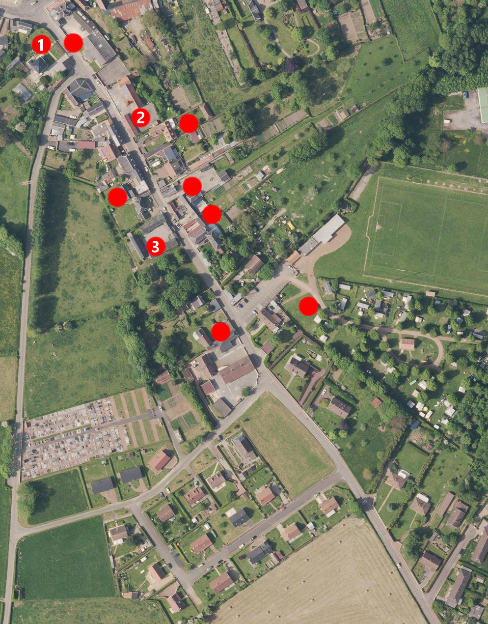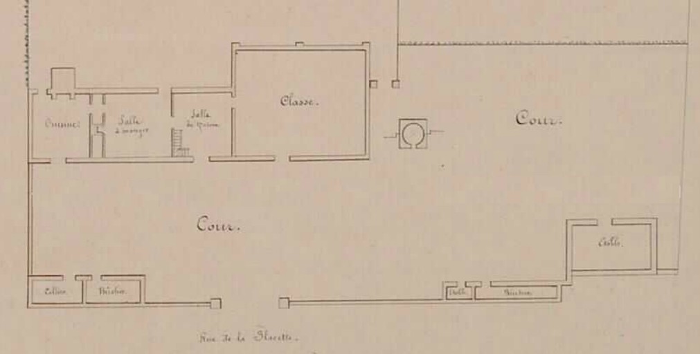 1 Rue des Écoles : Puits communal de l'école des garçons. Nous pouvons le voir représenté sur le plan de l'école dessiné en 1878 (consultable au Archives départementales).