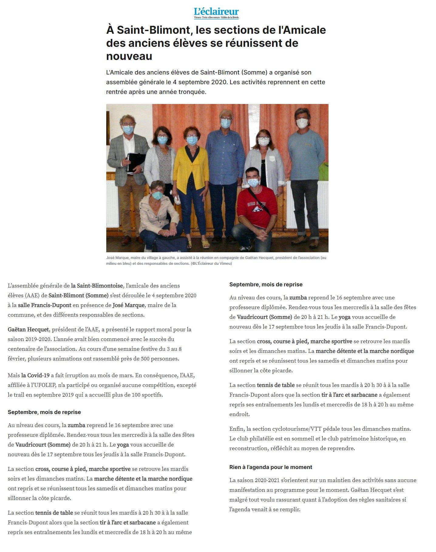 Assemblée générale 2020 (L'éclaireur du 9 septembre 2020)